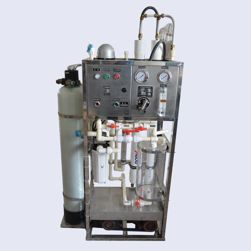 海水淡化機(jī)可安裝在船舶的輪機(jī)艙、船員艙、過(guò)道、廚房及有遮蓋的甲板上,底部加基座。設(shè)備正面應(yīng)留有0.6米,兩側(cè)及后面各留有0.3米的操作維修空間。